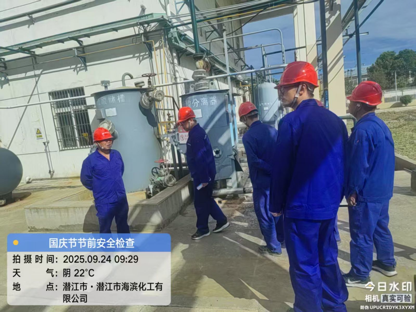 中秋、國慶“雙節”臨近,為切實保障節日期間生產安全穩定,9月24日,可賽公司生產部組織開展了節前安全大檢查。生產副總劉年平帶隊,各車間負責人、各專業代表十余人參加此次檢查,深入各生產區域,聚焦關鍵裝置與重點部位,全面排查安全隱患,為節日期間安全生產保駕護航。